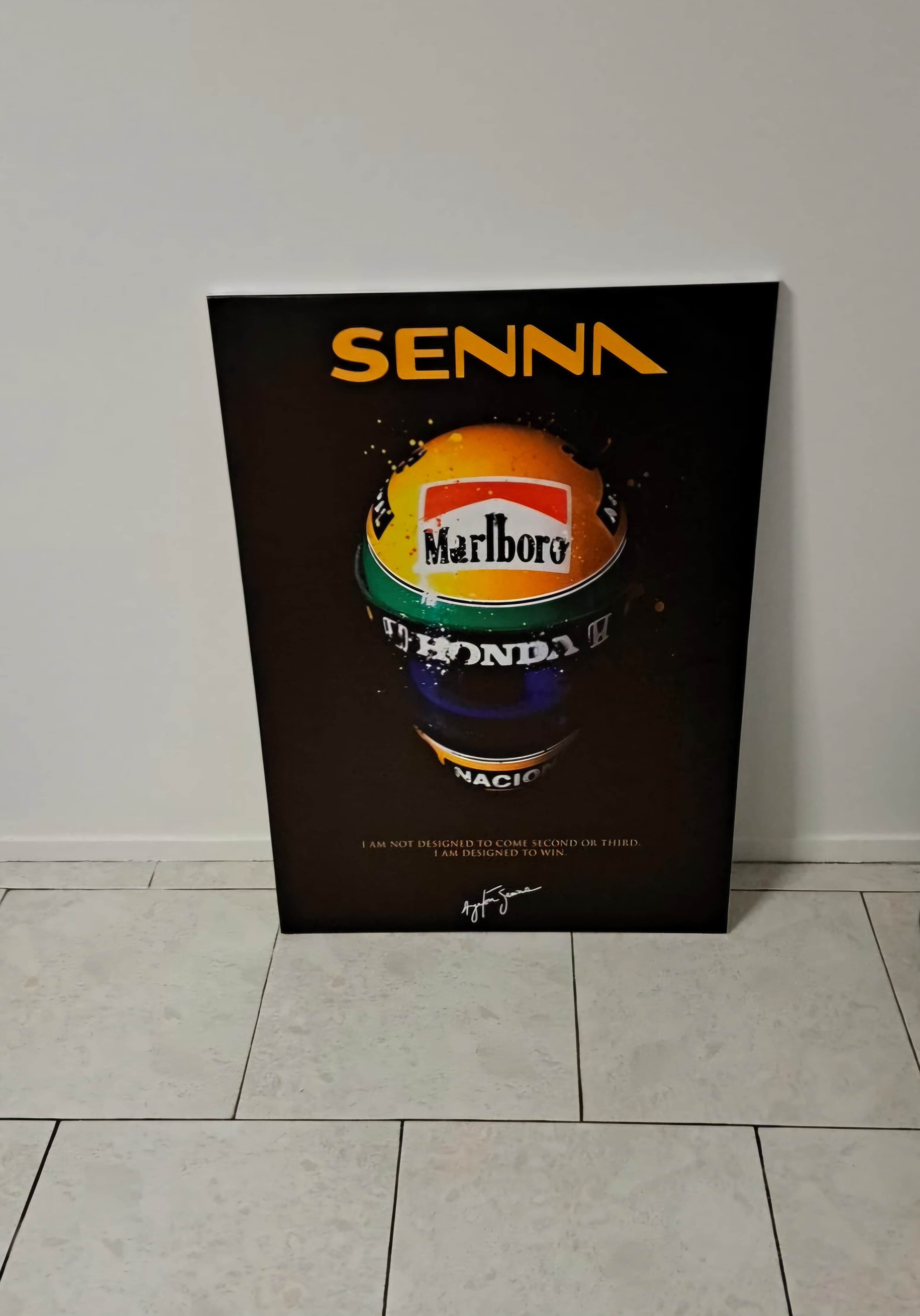Conçu pour attirer le regard, ce tableau s’intègre harmonieusement à tous les styles d’intérieur, ajoutant une touche de sophistication et de sportivité. Chaque détail évoque la précision et la détermination qui ont marqué la carrière de Senna.